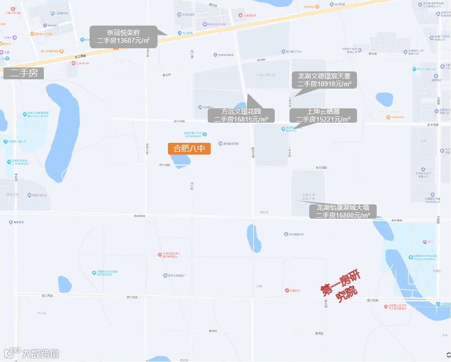 二手房方面,目前板块内二手房价格下降趋势明显,总的价格在1.1-1.6万元/m²。