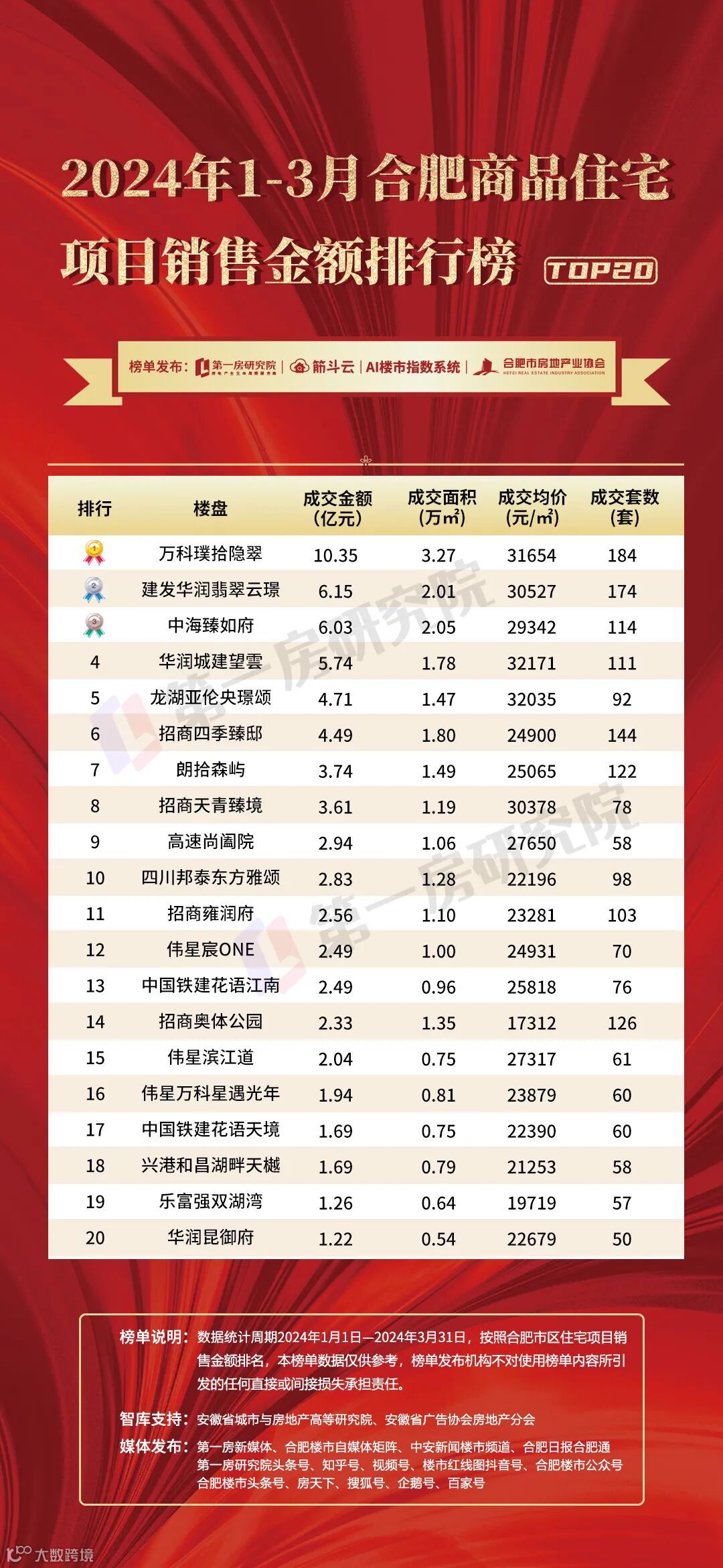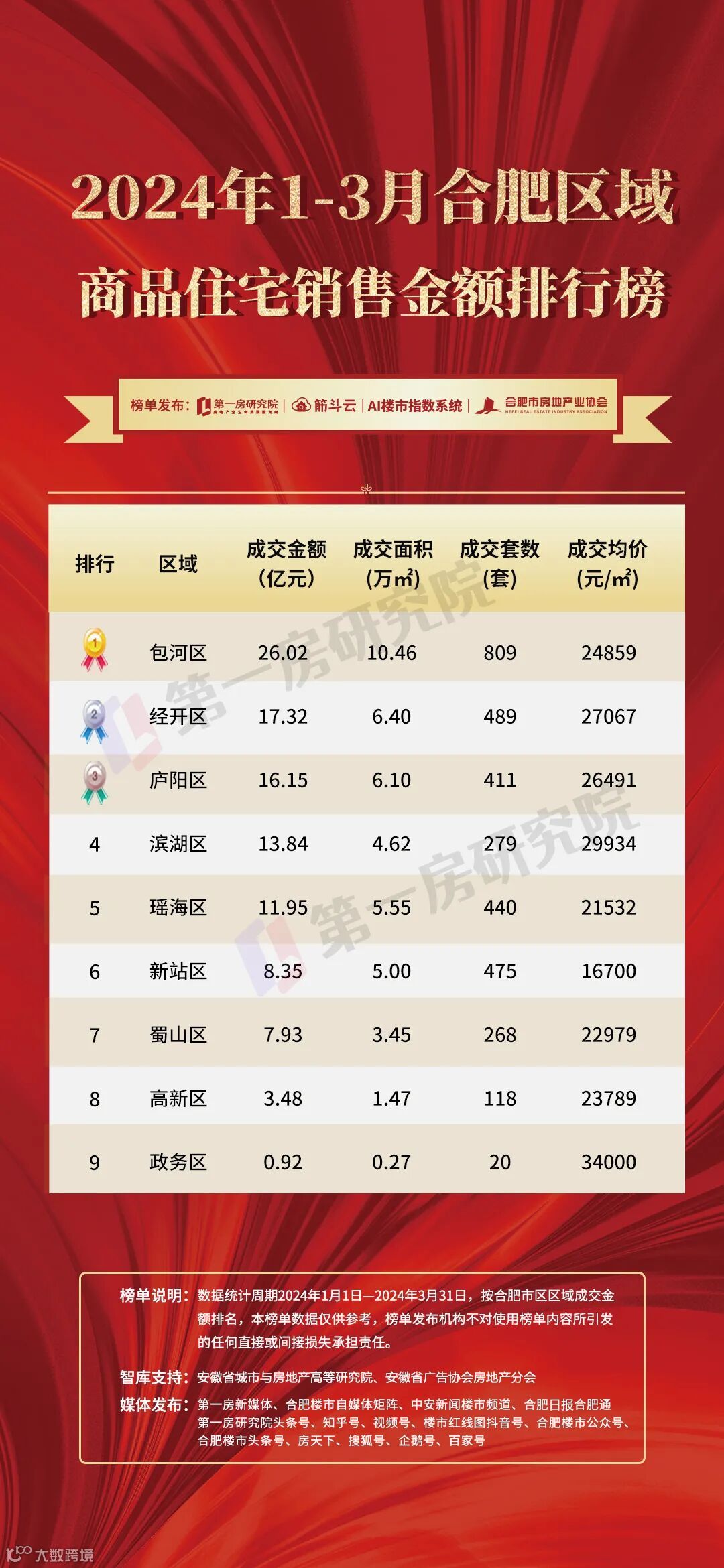 合肥区域商品房住宅销售金额排行榜