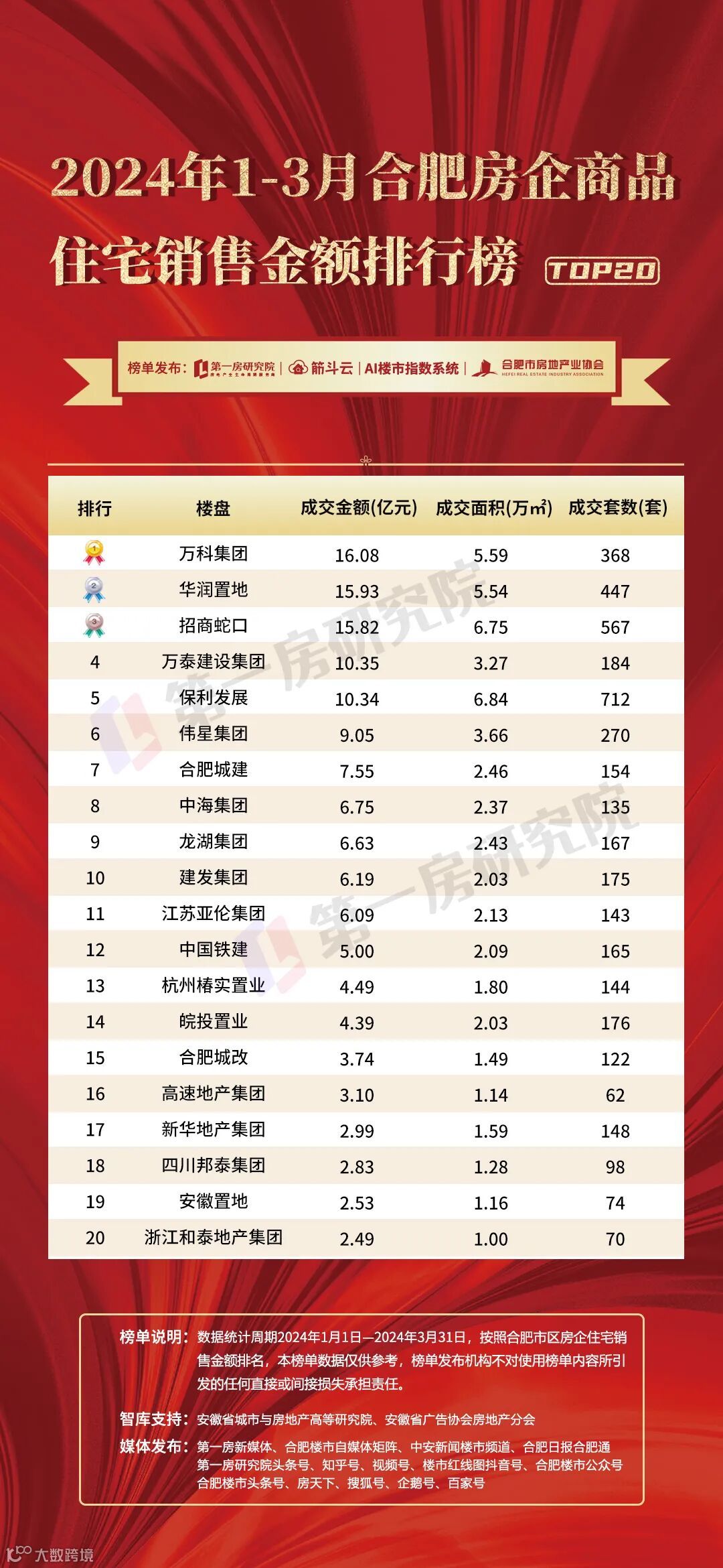 合肥房企商品住宅销售金额排行榜TOP20房企