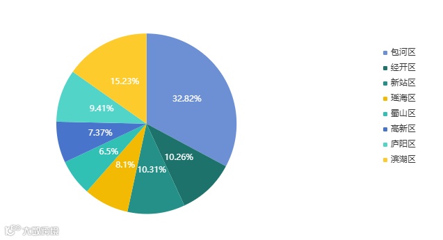 挂牌量:瑶海区、包河区并列第一,庐阳区、肥西县紧随其后。