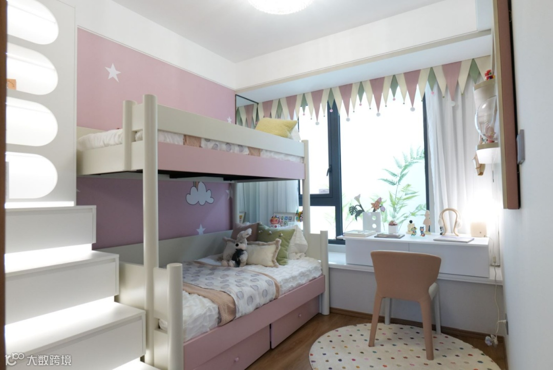138m²三室两厅两卫,三个卧室+一个书房,书房可以根据业主的喜好进行改造,每个卧室也都配了飘窗,主卧南北通透,同时还有一个衣帽间,品质提升。
