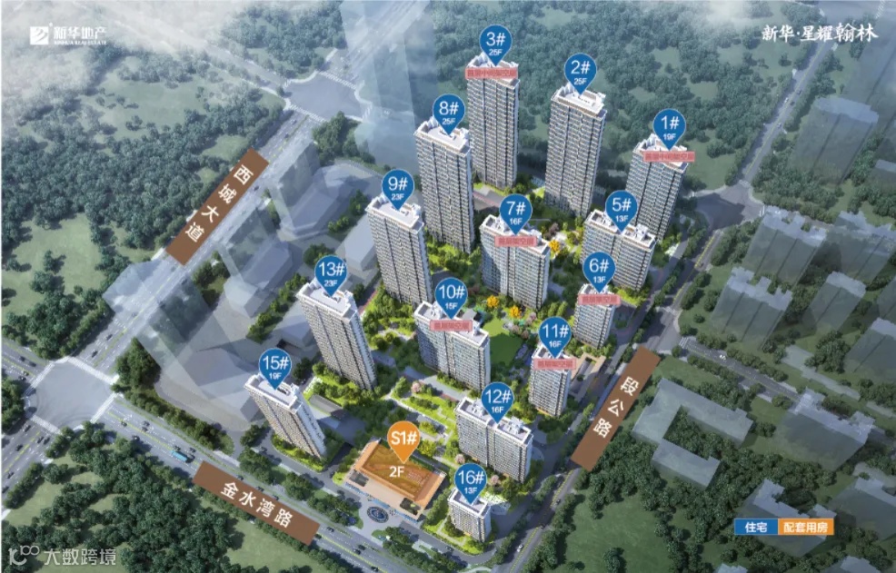 新华·星耀翰林共规划14栋住宅,其中高层(19-25F)共7栋楼,小高层(13-16F)共7栋楼,住宅共944户。