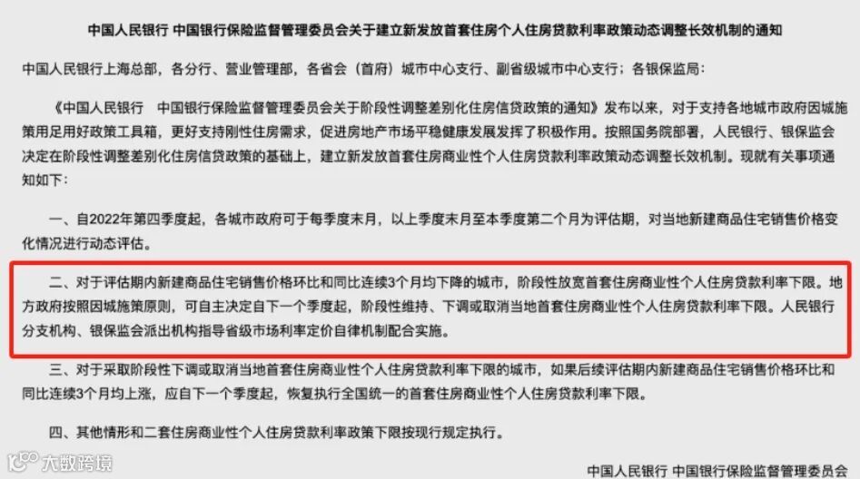 央行、银保监会联合发布《首套住房贷款利率动态调整机制》