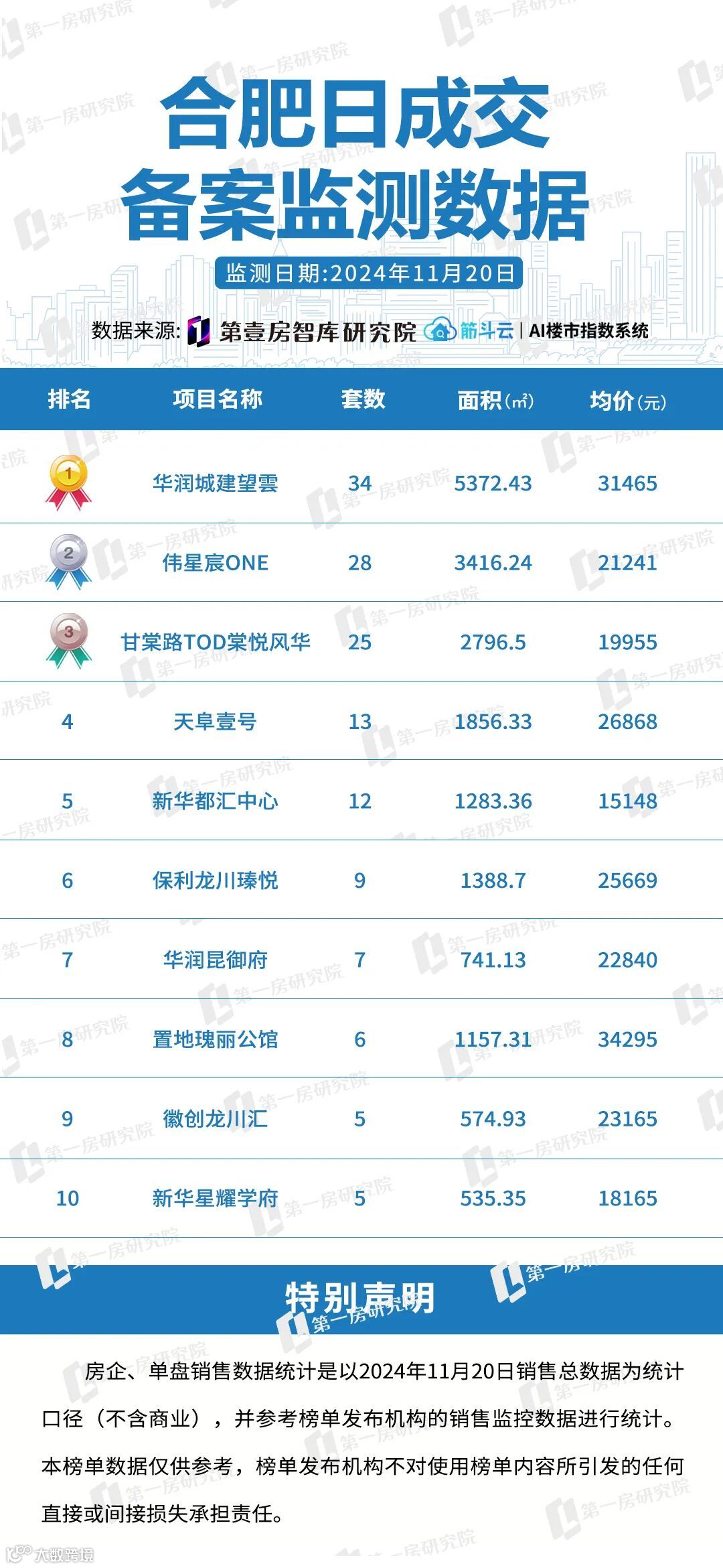 11月20日合肥市区备案住宅类商品房175套,备案均价25052元/㎡