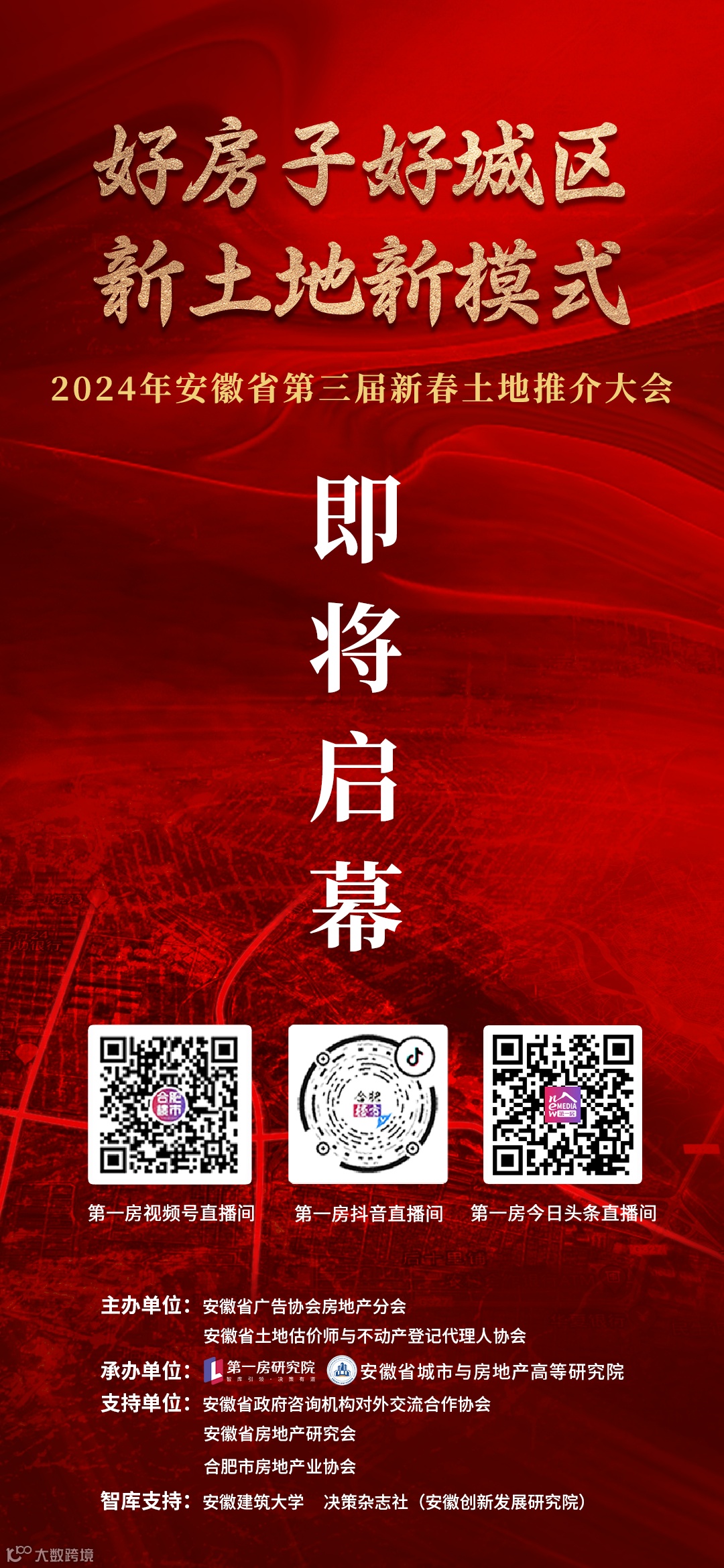 2023年12月21日至22日,全国住房城乡建设工作会议在北京召开。会议指出,以好房子为基础,推动好房子、好小区、好社区、好城区“四好”建设。根据住建部发布的会议精神,1月12日,由安徽省广告协会房地产分会、安徽省土地估价师与不动产登记代理人协会主办,第一房研究院 、安徽省城市与房地产高等研究院承办的“好房子好城区 新土地新模式”——2024年安徽省第三届新春土地推介会举办,打响2024年安徽土地招商的“第一枪”!