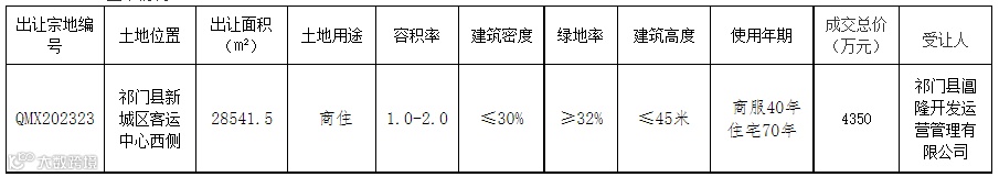 根据《招标拍卖挂牌出让国有建设用地使用权规定》(国土资源部令第39号),现将祁门县国有建设用地使用权挂牌出让成交结果公示如下: