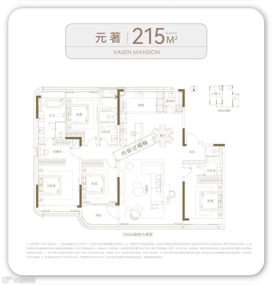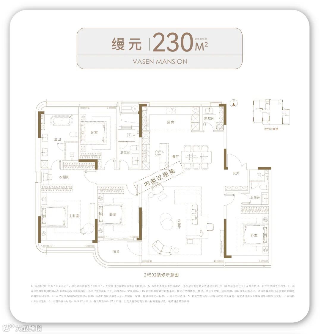 在户型设计上,伟星天元项目主打180㎡、214㎡、230㎡三种户型,均为四室两厅设计,空间布局合理,动静分离,满足了不同家庭结构和生活习惯的需求。其中,180㎡户型以实用为主,空间利用率高;214㎡户型则配备了家政间,提升了居住的便捷性和舒适度;230㎡户型则更加宽敞,中西厨设置满足了业主对高品质生活的追求。