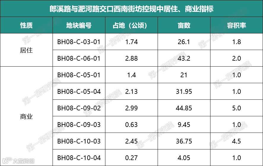 6宗居住用地:合计148.05亩,BH08-C-05-01地块占地21亩,容积率1.0;BH08-C-05-04地块占地31.95亩,容积率1.0;BH08-C-09-02地块占地44.85亩,容积率5.0;BH08-C-09-03地块占地9.45亩,容积率1.0;BH08-C-10-03地块占地36.75亩,容积率4.5;BH08-C-10-04地块占地4.05亩,容积率1.0;这些商业地块从容积率上来看,1.0左右地块适合做商业街区,4.5-5.0容积率的地块适合做写字楼商业。