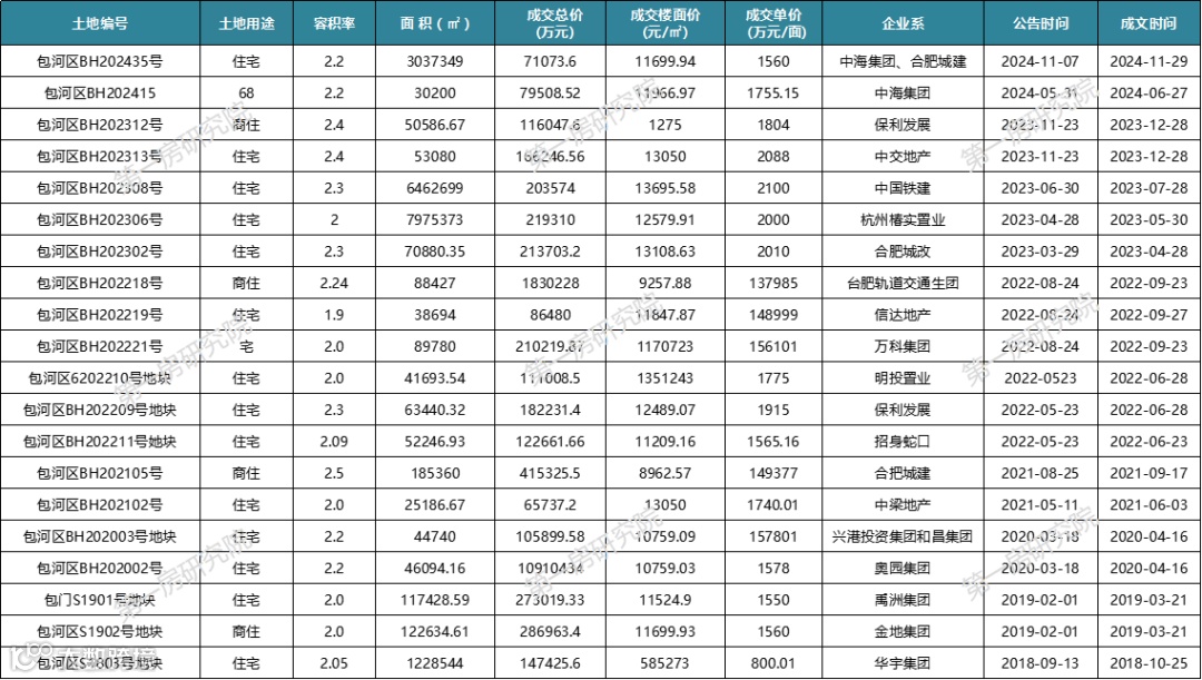 从近7年淝河板块土地出让来看,淝河板块房地产快速发展主要集中在2022年和2023年这两年,2022年淝河板块土地供应了6宗地块,2023年淝河板块供应了5宗地块,而去年淝河板块仅出让2宗地块,均被中海竞得。从地价来看,2023年土地成交单价都突破2000万/亩,而最近中海和合肥城建拿的一宗地块成交单价1560万/亩,这个价格其实已经回到了2019年。