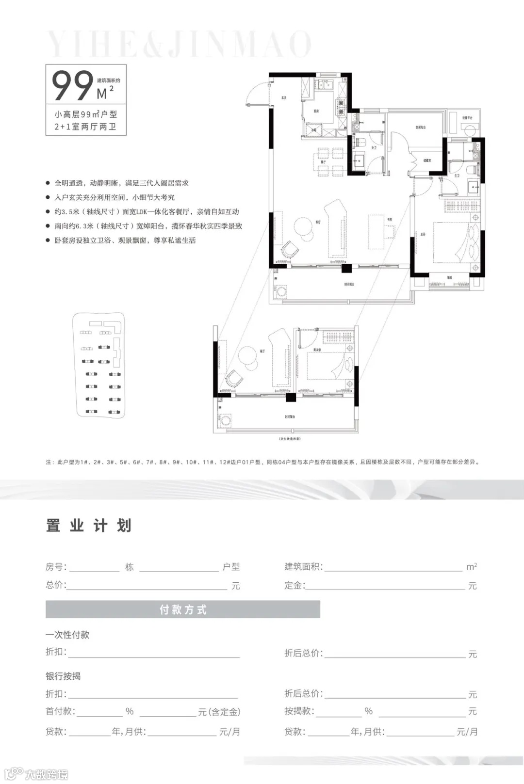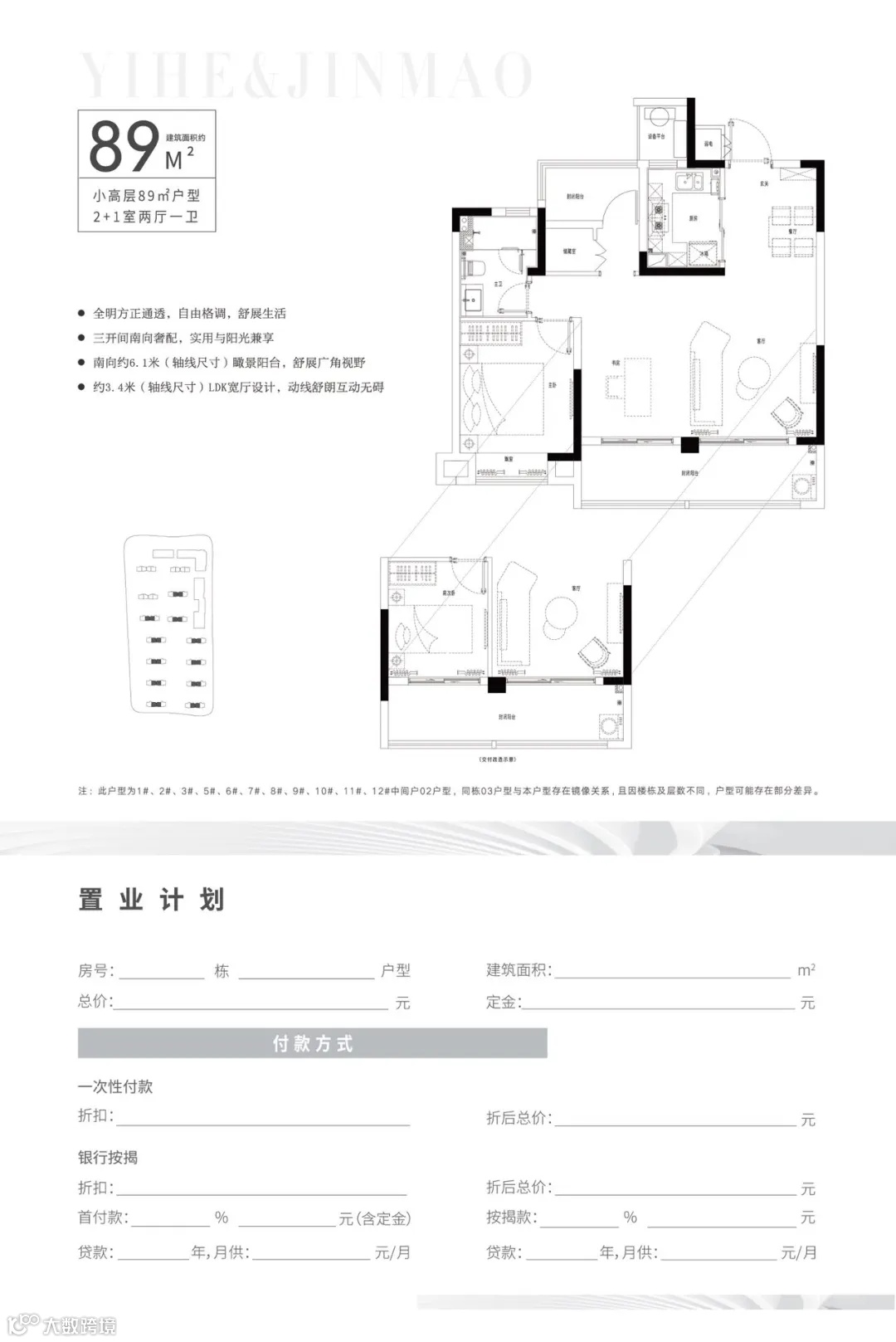 户型设计:在户型设计方面,意禾金茂·学林拾光充分考虑了新青年家庭的需求。项目定制了建面约89-99㎡的百变灵动户型,设有2+1拓展空间,南向大面宽、LDK客餐厅一体化设计、跑道双通式长阳台等设计巧思,让居民在有限的空间内享受到更多的舒适和便利。