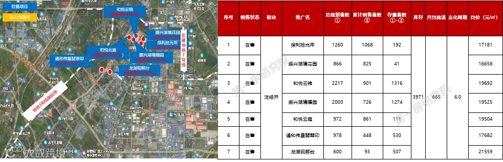 泛经开板块目前在售7个,板块月均流速665套,单盘月均流速95套,流速各板块第一位,广义存量去化周期6个月,也是目前各板块去化周期最小的,新房市场非常健康。