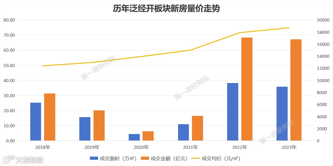 而泛经开片区由于2022年地块出让较多,导致2023年新房在售项目较多,竞品压力较大,在2023年房企拿地时有所顾虑。