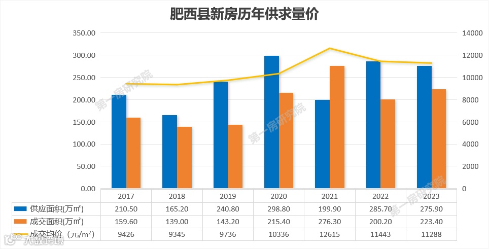 根据筋斗云AI楼市系统统计数据显示,肥西县近几年成交量逐年增长,2022年受市场大环境下行影响,成交有所下滑。2023年肥西县住宅成交量逆势增长,2023年成交223.4万㎡,同比上涨11.6%。