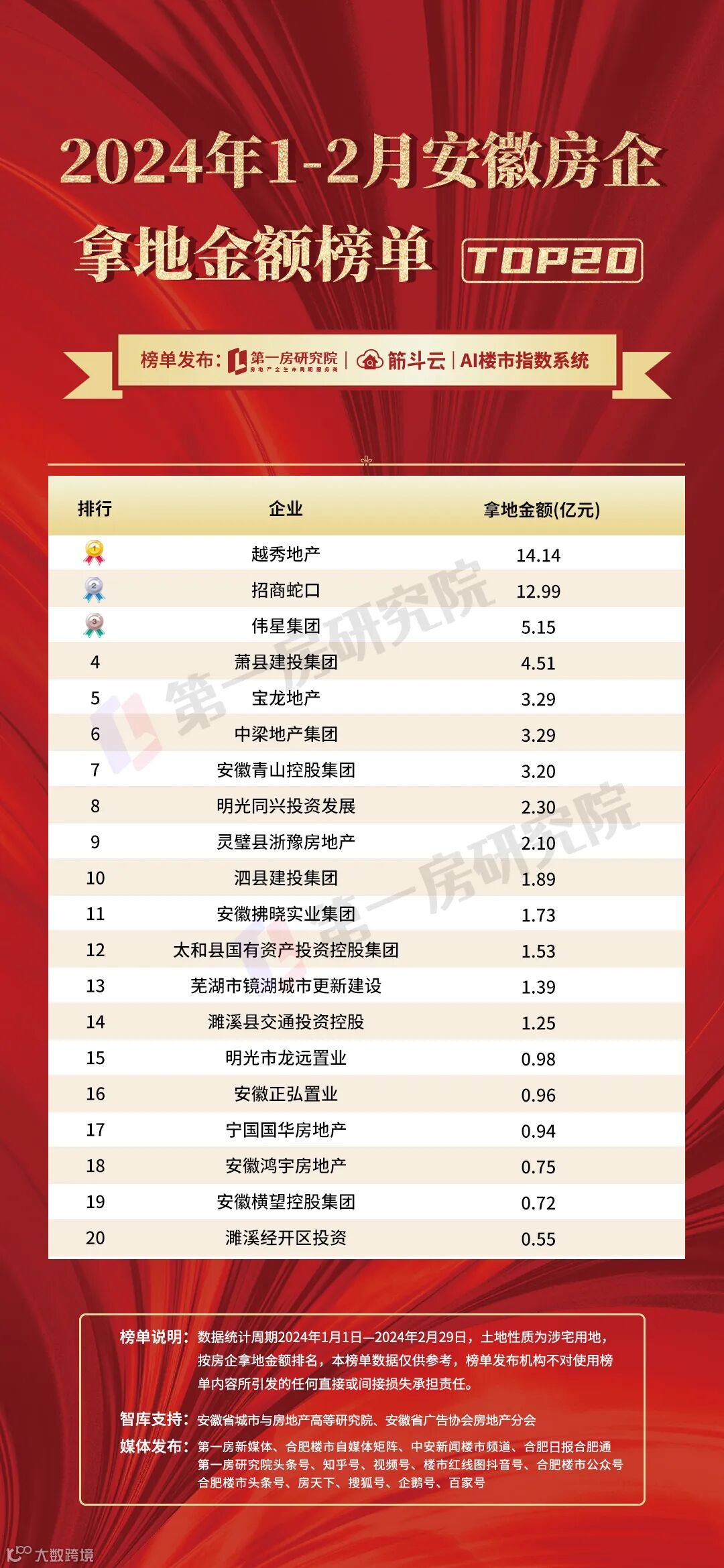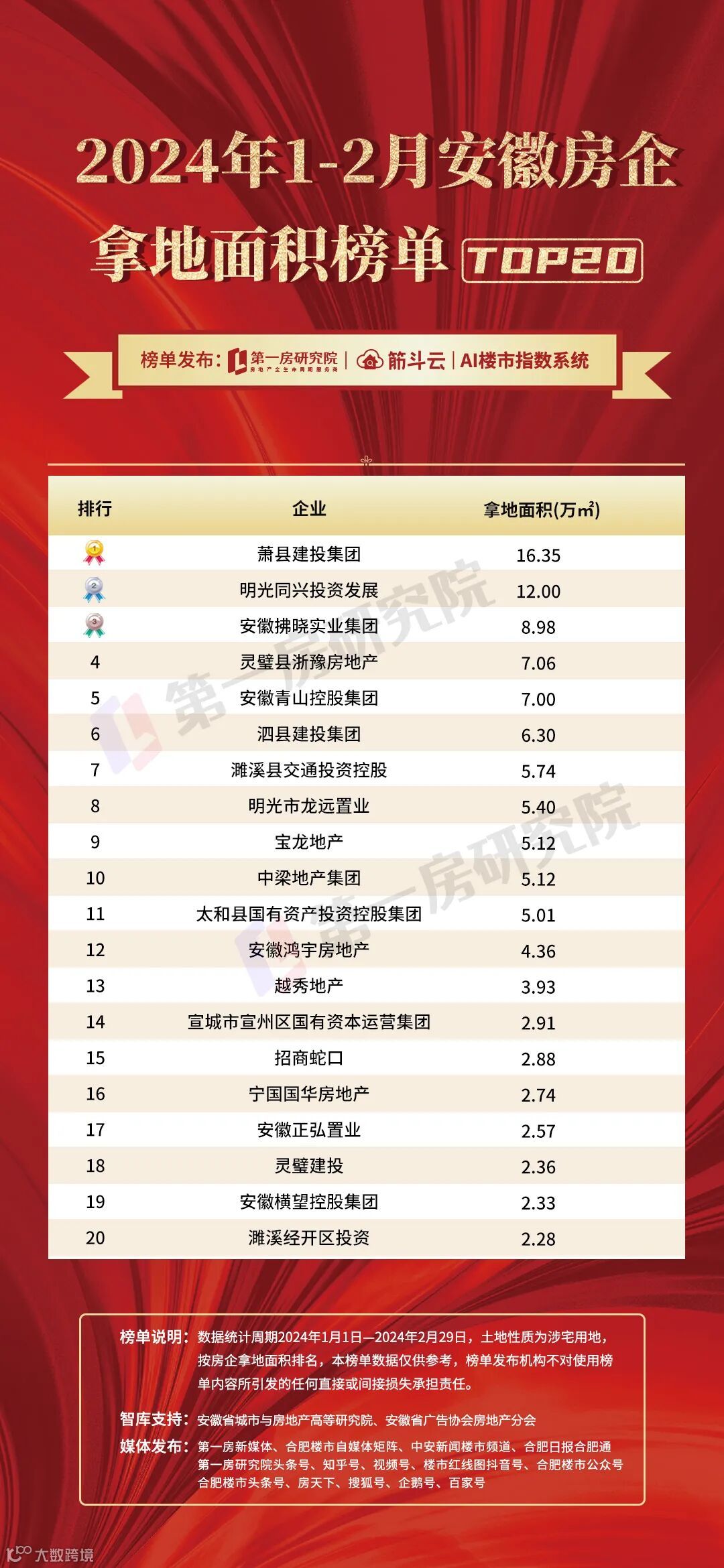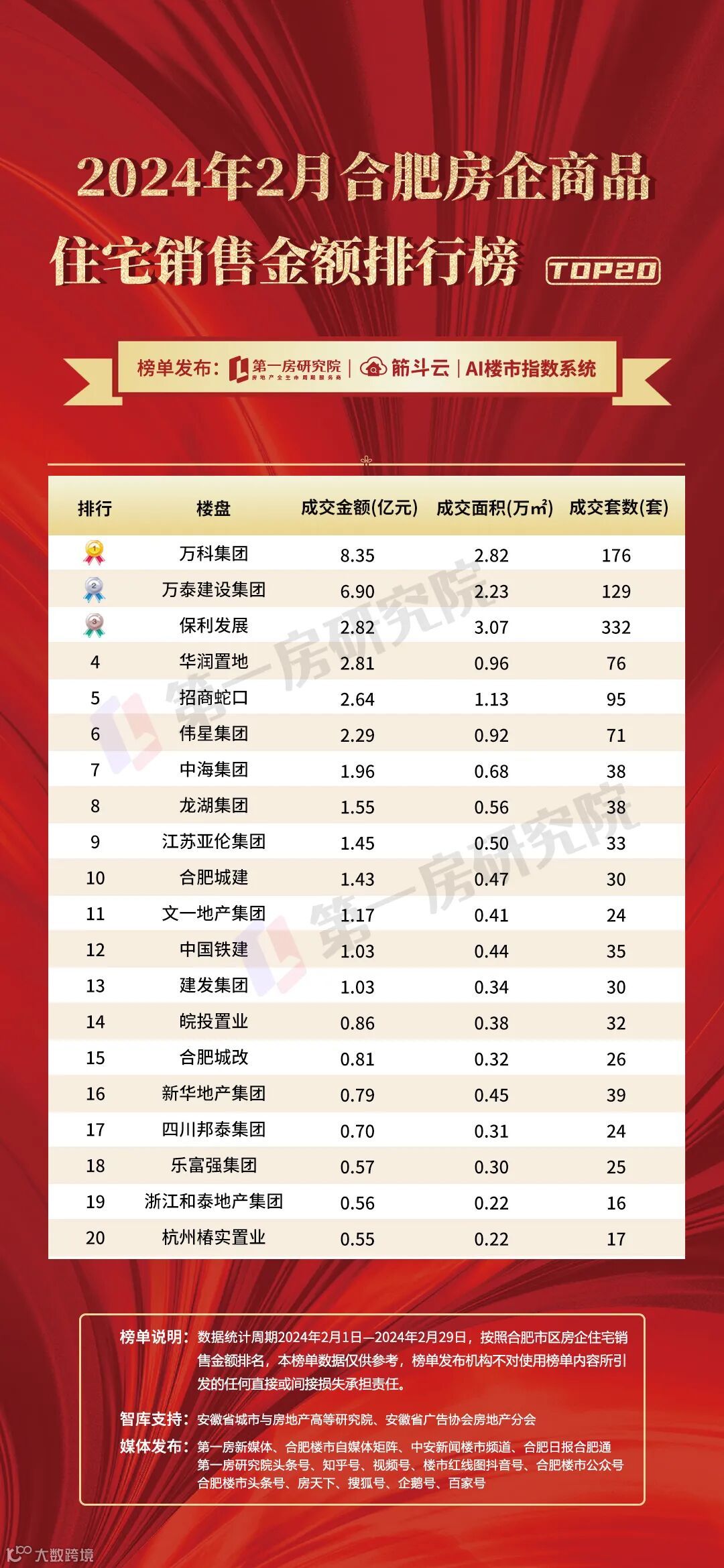 2024年2月合肥楼市及安徽土地榜单发布!万科勇夺榜首!