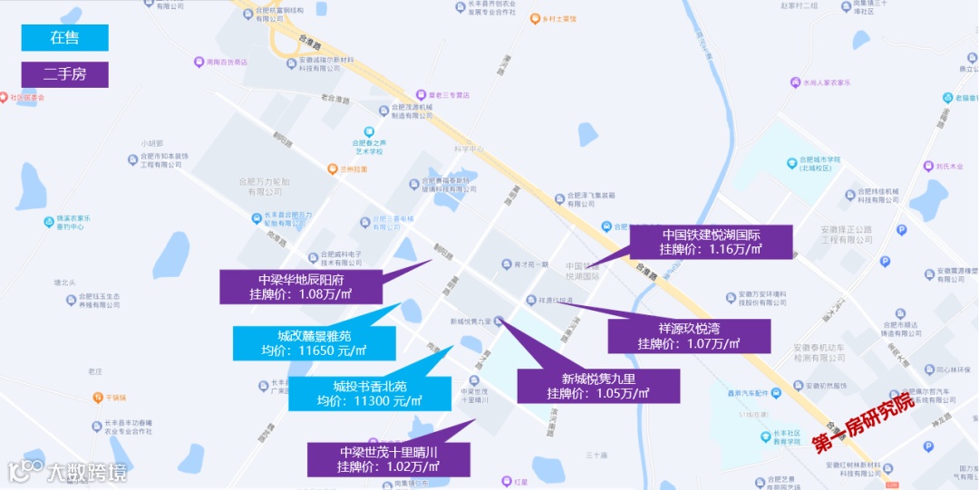 目前长丰岗集在售2个项目,城改麓景雅苑和城投书香北苑,小高层均价11500元/㎡,洋房12500元/㎡。