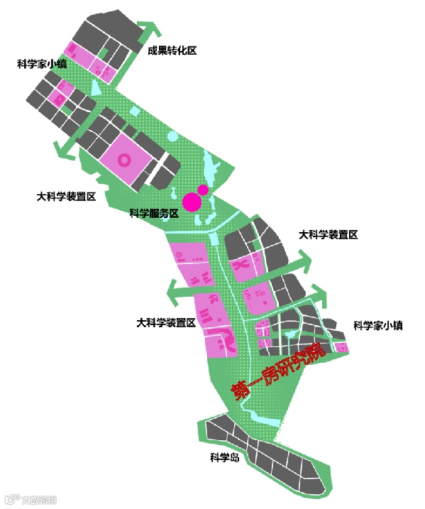 科学岛2800亩,主要功能:大装置+科研+生活配套