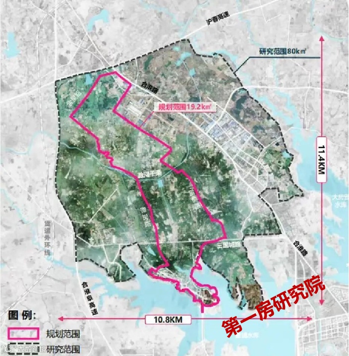 本次专项规划和城市设计项目的研究范围约80平方公里,核心规划范围约19.2平方公里。