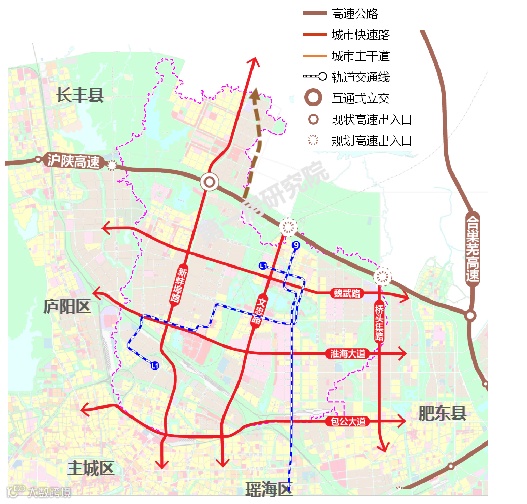 在交通方面,周围密布以淮海大道、包公大道、大众路等干线构成的三横四纵路网,串联全城;地铁3、4号线贯通全域,与合肥主城无缝衔接。规划地铁9号线,以及合肥拟建首条低运量轨道交通L1线。
