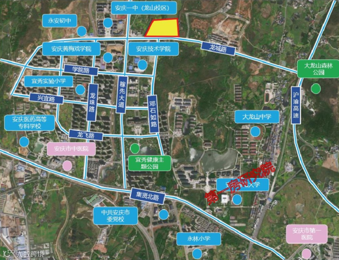 作为北部新城里的重点地块,安庆一中龙山校区东侧地块周边学校环伺,教育资源丰富。北部新城是安庆市重要的科教基地,安庆师范大学、安庆医专、市委党校等坐落其中,未来发展潜力巨大。