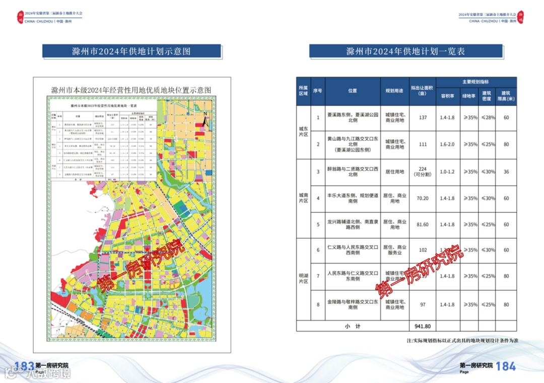 作为近年来发展迅速的黑马城市滁州,在2024年计划供应8宗942亩地块,分布在城东片区2宗,城南片区3宗以及明湖片区3宗。
