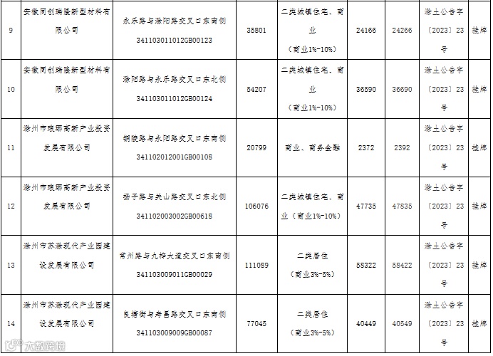 滁州市成交12宗地涉宅用地,总成交价37.54亿元