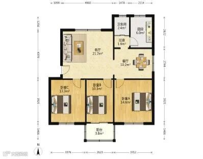 总体来看,小区的区位优势明显,首先价格120万,均价1.2万/m²,算是低于板块的二手房价格,并且位于老城区,所以周边的配套也很完善。并且户型三间卧室都朝南,采光充足。