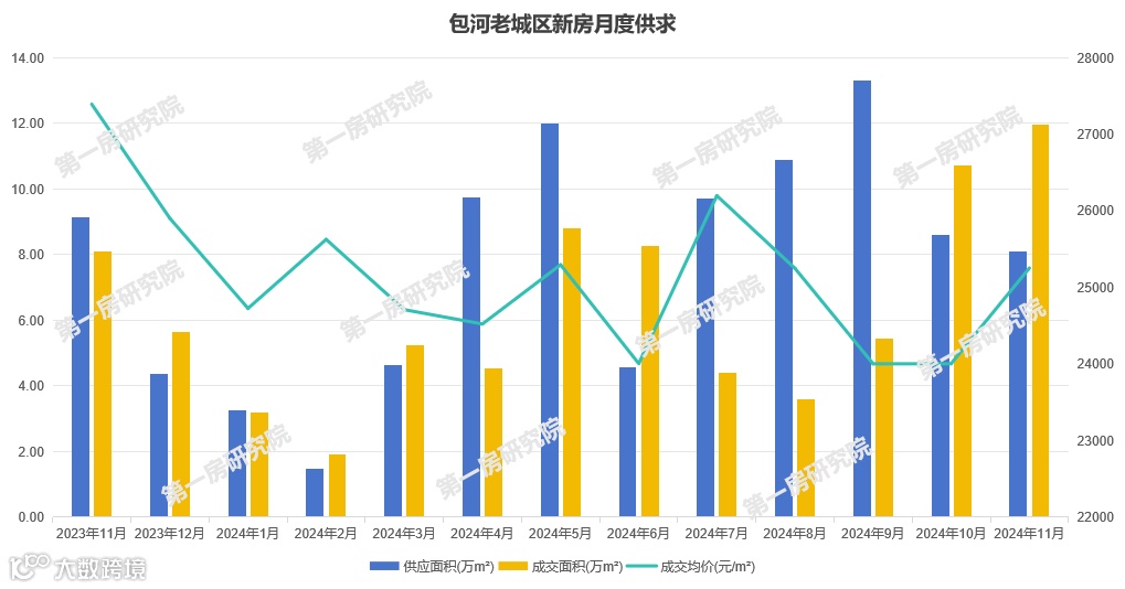 11月包河老城成交面积达到近一年的新高,成交量11.95万m²,同比上涨47%。成交均价25254元/m²,环比上涨5%,同比下降7.8%。