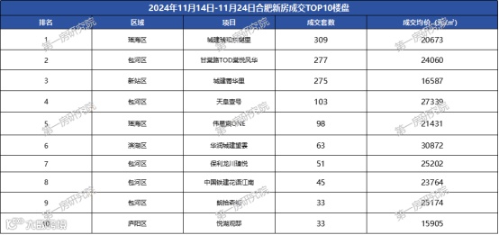 我们来看下上周合肥新房备案楼盘,前三分别是城建琥珀东樾里、棠悦风华和城建青华里,东樾里和棠悦风华上周有些楼栋刚取预售证,但目前来看三个项目包括前期房源基本售完。