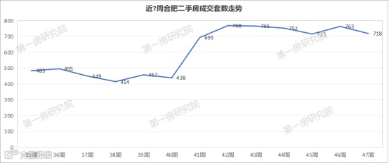 再来看看二手房市场,上周合肥二手房成交了718套房源,环比上周二手房成交量下跌5.9%,已经连续6周成交量保持在700套房源以上,而且整体来看,合肥二手房成交量呈上涨趋势,而且从近期的成交量来看,二手房活跃度较高。