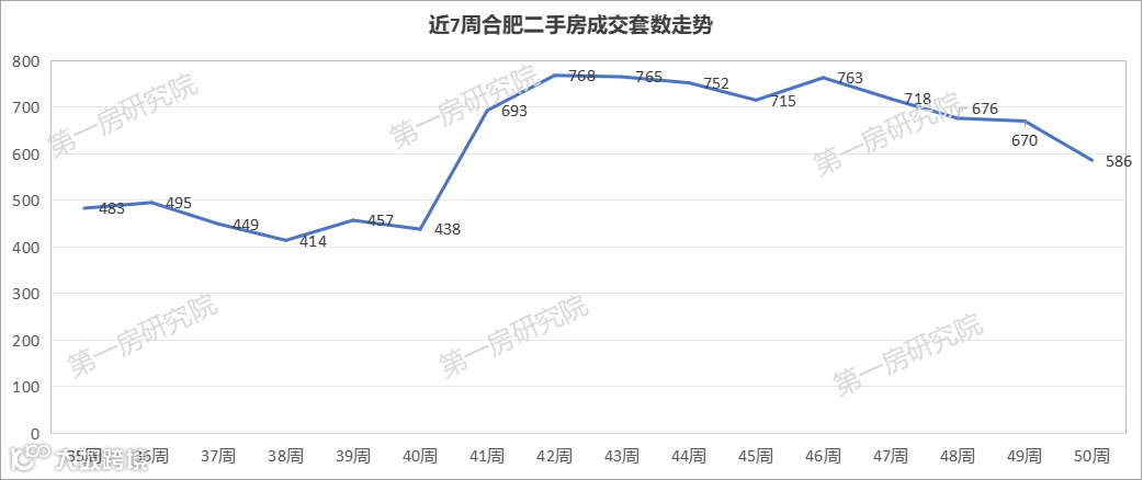 再来看看二手房,上周合肥二手房成交586套房源,环比下跌12.5%,这已经是二手房连续4周成交量下跌,但不过从今年以来成交量上来看,依然保持较高的成交量,二手房依然较为活跃。