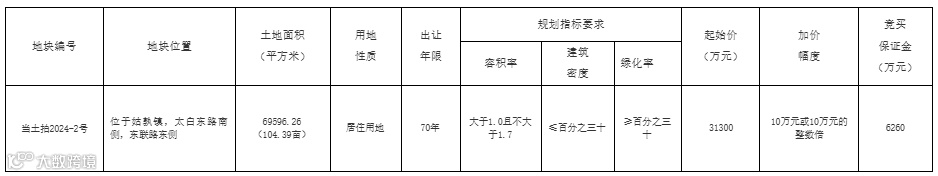注:竞得人的保证金抵作国有土地使用权出让收入,由当涂县公共资源交易中心代竞得人向税务部门申报缴纳。