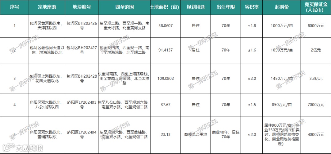 该地块位于包河区上海路以东、花园大道以北,占地面积109.0802亩,规划居住用地,容积率≤2.0,起拍单价1450万元/亩,竞买保证金3.3亿元。