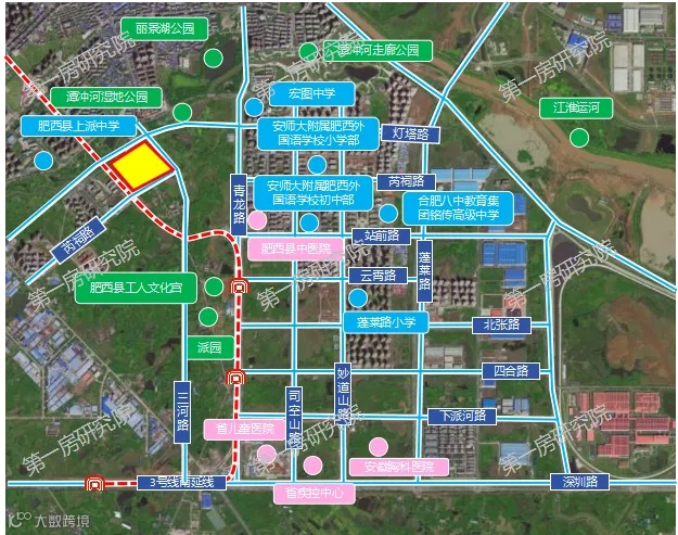 该两宗地块位于肥西中派片区,片区内基础配套设施齐全,地铁3号线站点旁,直达政务,出行比较方便。周边有合肥市南门小学(上派分校),安师大附小、附中,合肥八中铭传中学等众多优质教育资源,同时板块内汇集了县中医院、复旦大学附属儿科医院安徽医院、安徽胸科医院、省疾控中心等医疗资源。
