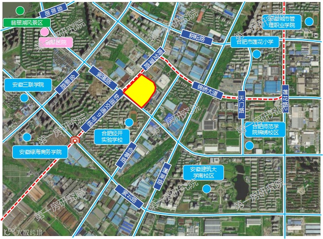 地块位于肥西泛经开板块,毗邻经开区、政务区,共享市区配套,去明珠广场、正大广场不过10分钟左右车程。周边集聚合肥工业大学翡翠湖校区、安徽大学磬苑校区等高等院校,整体人文氛围浓厚。