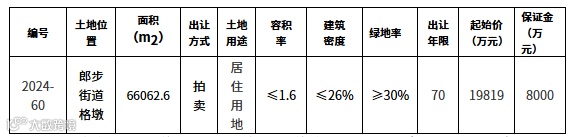 2024-60号地块拍卖时间:2024年10月22日10时;