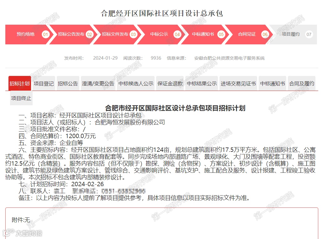 早在今年1月份,合肥市公共资源交易中心就公示了合肥经开区国际社区设计总承包项目招标计划。当时的招标单位正是合肥海恒发展股份有限公司,而对应的项目也正是合肥经济开发区望水路以北,规划三路以西地块,这与今天的成交结果不谋而合。该项目最终由合肥工业大学设计院(集团)有限公司中标。而且,在今年合肥市举办2024年第3期片区策划活动中,合肥工业大学建筑与艺术学院副教授徐晓燕也解读了大众国际社区项目策划内容。种种迹象表明,肥西县FX202417号地块很有可能就是大众国际社区项目。