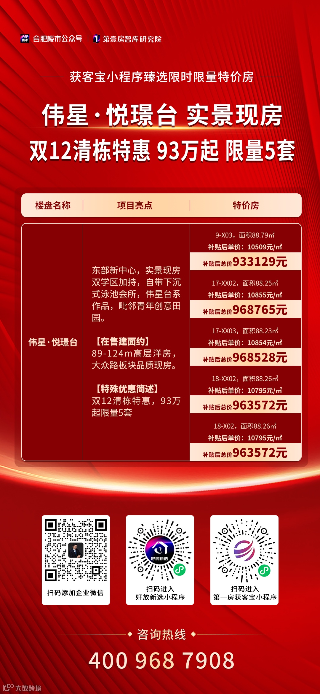 随着年末的脚步渐近,合肥楼市迎来了一波特价房源的狂潮,这对于众多购房朋友而言,无疑是翘首以盼的良机。在楼市下行的背景下,购房者普遍担心买贵了,心中难免有所顾虑。然而,此次特价房源的推出,无疑为那些一直持观望态度的购房者提供了一次难得的捡漏机会。一些热门楼盘即将售罄,错过这次机会,可能再难遇到如此诱人的优惠。