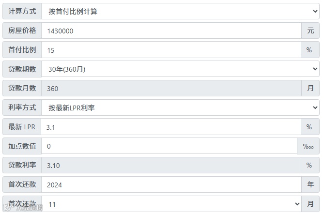 房东希望售价143万,以首付15%,等额本息30年还款,当前3.1%利率计算,每个月需要承担5190元的月供。