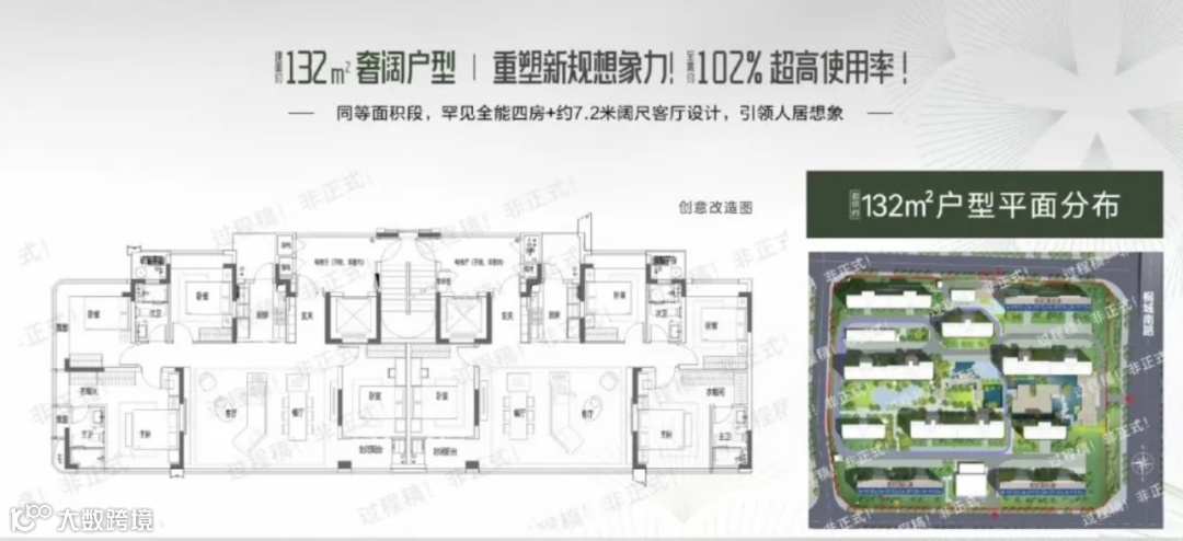 四川邦泰·璟和朗月项目曝光的四大户型图(132㎡、143㎡、173㎡、175㎡),其中,132㎡户型使用率到达了102%。