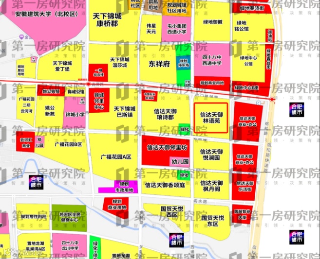 对政务东内二手房价格。先来看下信达天御,信达天御位于宿松路与祁门路交口,住宅主要是西侧5宗地块,分别是琅诗郡、林语苑、悦澜园、枫丹阁和香颂庭这5个独立小区,在琅诗郡和香颂庭中间规划有邻里坊(包括小公园、商业和公寓楼)。以其中林语苑为例,小学为合肥市屯溪路小学教育集团西递小学、中学为合肥市48中西递校区,学校都距离很近,并且距离4号线薛河站300,出行便利。
