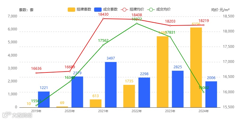 但自2021年开始,二手房价格开始大幅度下滑,2023年下滑最严重,2021年挂牌价突破3.3万/m²,现在挂牌价只有2.3万/m²,直降超1万/m²,成交价目前也是在2.1万/m²左右。