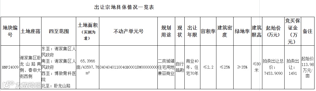 一、出让地块的基本情况和规划指标要求:详见《出让宗地具体情况一览表》
