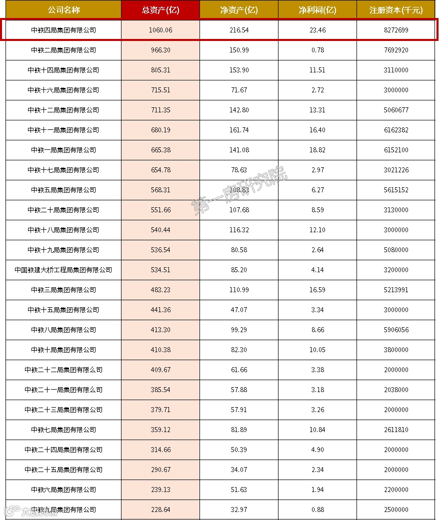 中国中铁2022年实现新签合同额30323.9亿元,营业总收入11543.58亿元,净利润349.72亿元,从总资产规模来看,中铁四局集团总资产规模超过千亿,净利润规模超过20亿,排名双榜首。净利润超过10亿有8家工程局,分别是中铁一局净利润18.82亿元、中铁三局净利润16.59亿元、中铁十一局净利润16.4亿元、中铁十二局净利润13.31亿元、中铁十八局净利润12.1亿元、中铁十四局净利润11.51亿元、中铁七局净利润10.84亿元、中铁十局净利润10.05亿元。净利润是衡量一个企业经营情况最为关键的指标,代表着公司的经营效益。从铁四局的利润表现来看,企业未来潜力强劲。