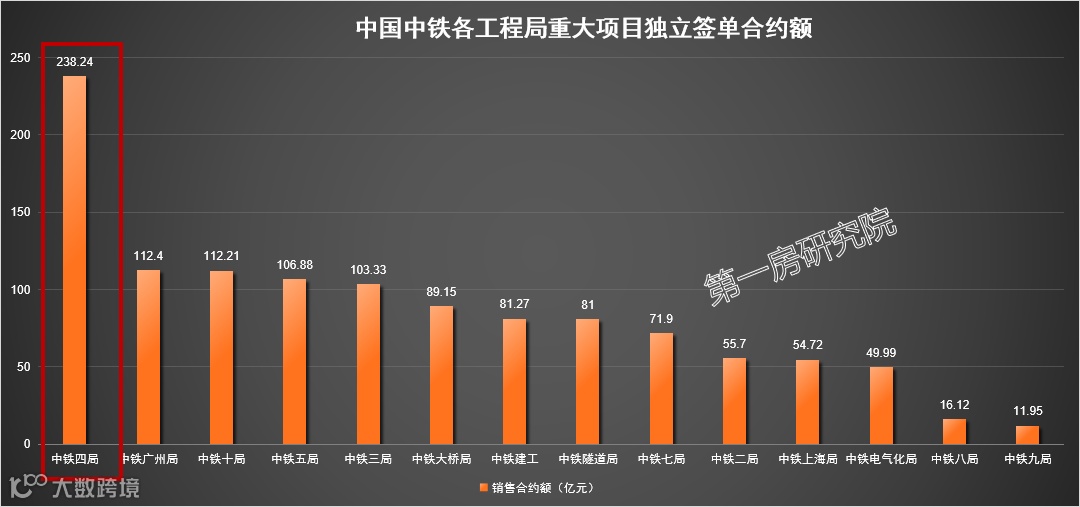 根据中国中铁公布的2023年第二季度经营情况来看,独立签约的大单累计合同额中铁四局排名第一,中铁广州局紧随其后,中铁十局排名第三。各工程局的排名为:中铁四局>中铁广州局>中铁十局>中铁五局>中铁三局>中铁大桥局>中铁建工>中铁隧道局>中铁七局>中铁二局>中铁上海局>中铁电气化局>中铁八局>中铁九局。
