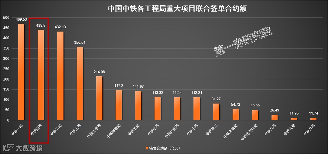 加上与其他单位的联合签约合同额,中铁一局排名第一,中铁四局排名第二,中铁二局排名第三。各工程局的排名为:中铁一局>中铁四局>中铁二局>中铁三局>中铁大桥局>中铁隧道局>中铁五局>中铁七局>中铁广州局>中铁十局>中铁建工>中铁上海局>中铁电气化局>中铁八局>中铁九局>中铁六局。