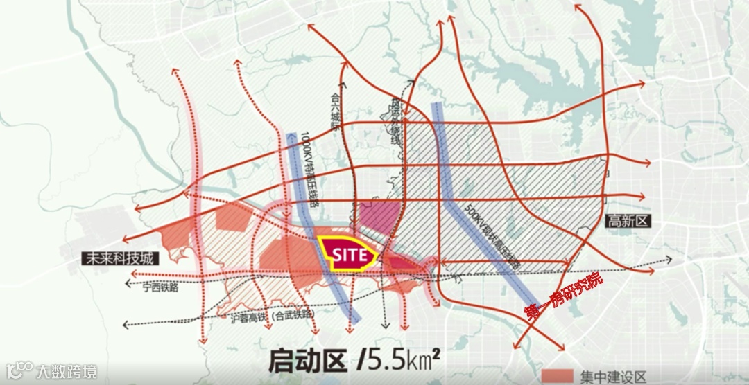 第一阶段也是整个片区的启动区,既是聚集未来产业,引爆城市的先发区域,也是高新区破解短板、联动近期项目的重要承载,结合高新老区就近空间延展,近期重点项目建设条件等因素,选取天柱山路沿线约5平方公里做为启动区。