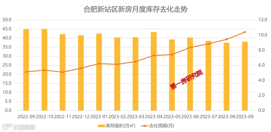 截止到今年9月份,合肥市新站区新房库存面积为38万㎡,去化周期为10.4个月,处于相对健康的态势。