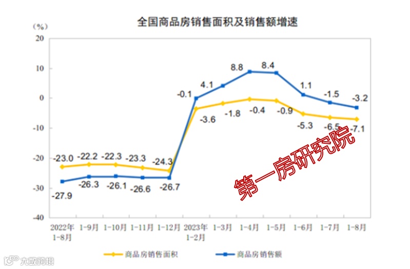 1—8月份,商品房销售面积73949万平方米,同比下降7.1%,其中住宅销售面积下降5.5%。商品房销售额78158亿元,下降3.2%,其中住宅销售额下降1.5%。