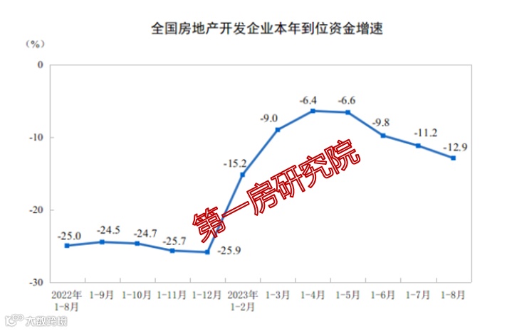 1—8月份,房地产开发企业到位资金87116亿元,同比下降12.9%。其中,国内