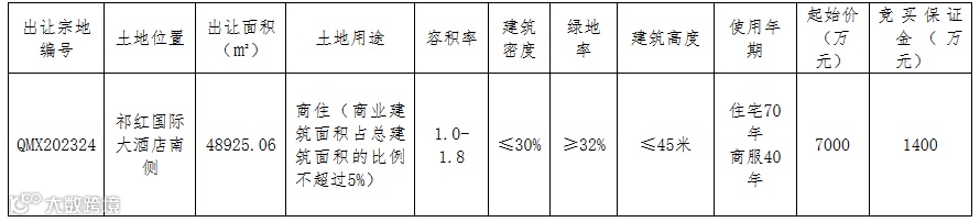 QMX202324号地块的竞买人须为具有房地产开发二级及二级以上资质的公司法人,除因拖欠土地成交价款等行为被纳入土地市场不良行为记录档案或国家法律法规另有规定外,均可参加报名本次挂牌出让。申请人均需单独申请,不接受联合申请。